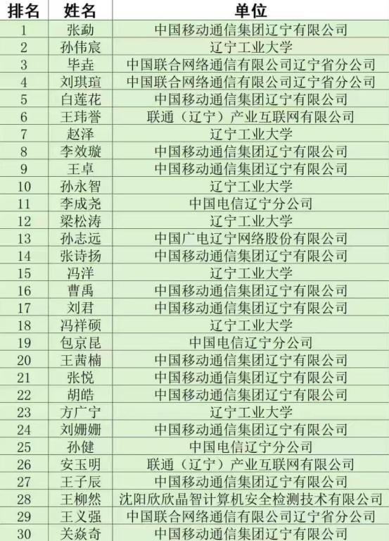 智慧校园建设中心所属的大学生创新团队-大学生探索网安全团队8人参加此次比赛。经过与中国移动、中国联通、中国电信、中国广电等运营商企业的专业技术人员比赛中,队员们在比赛过程中展示出扎实的专业技术,取得了优异的成绩,其中,LnutTSW02队(梁松涛,赵泽,王奕然)获得团队赛二等奖,LnutTSW01队(孙伟宸,冯祥硕,冯洋)获得团队赛三等奖,孙伟宸获个人赛二等奖(第二名),赵泽、孙永智、梁松涛、冯洋获个人赛三等奖,冯祥硕、方广宁获优胜奖。